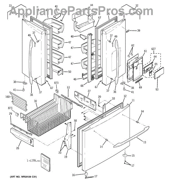 The Dispenser Shield is an OEM part for GE refrigerators equipped with water and ice dispensers. This shield acts as a protective cover for the dispenser area, preventing accidental spills or debris from entering the internal mechanisms.