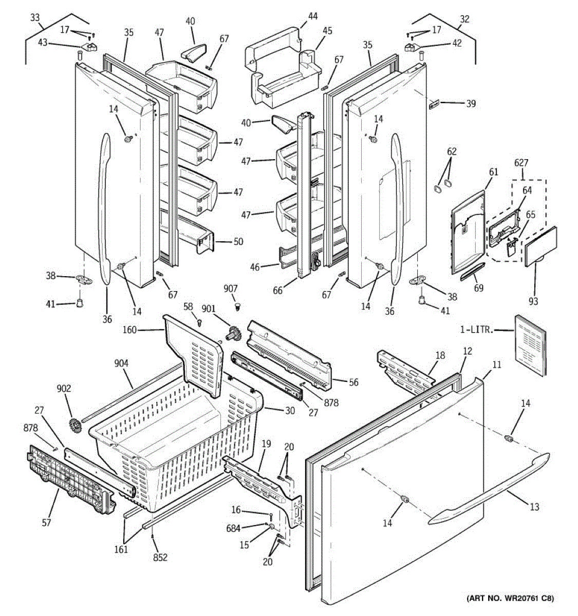 The Dispenser Shield is an OEM part for GE refrigerators equipped with water and ice dispensers. This shield acts as a protective cover for the dispenser area, preventing accidental spills or debris from entering the internal mechanisms.