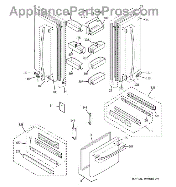 This handle assembly replaces a damaged or worn refrigerator fresh-food door handle to restore a secure grip and straight door appearance. It provides a factory-fit replacement that mounts where the original handle attaches. What it does:
