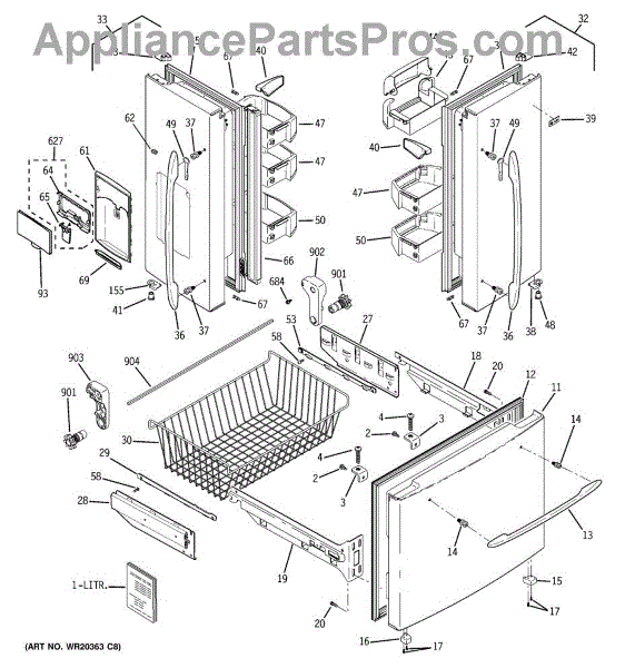 The Lower Freezer Basket is an OEM replacement part for GE refrigerators designed to fit in the lower section of the freezer, providing a convenient storage area for your frozen items.