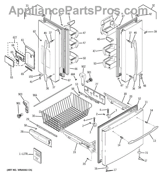 The Lower Freezer Basket is an OEM replacement part for GE refrigerators designed to fit in the lower section of the freezer, providing a convenient storage area for your frozen items.