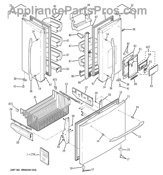 The Dispenser Shield is an OEM part for GE refrigerators equipped with water and ice dispensers. This shield acts as a protective cover for the dispenser area, preventing accidental spills or debris from entering the internal mechanisms.