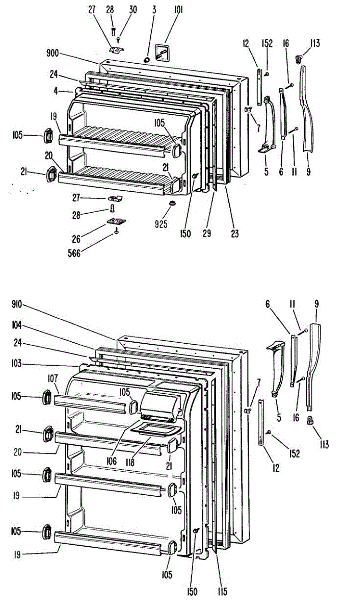 Hardware fasteners for securing refrigerator door panels and components. Includes screws, nuts, and washers for assembly. Replace missing or stripped pieces.