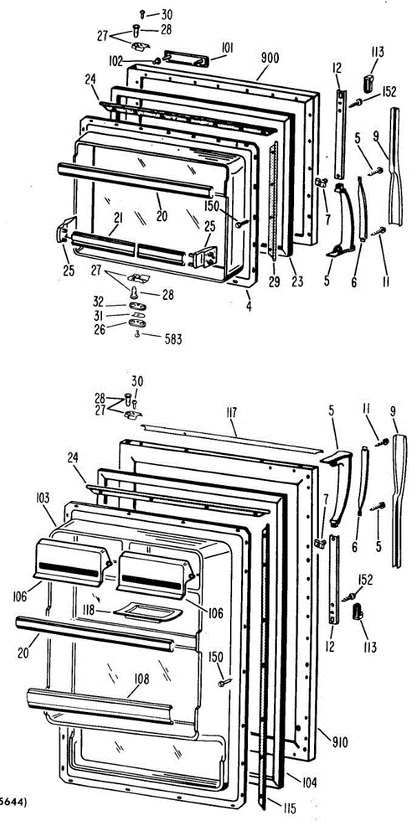 Hardware fasteners for securing refrigerator door panels and components. Includes screws, nuts, and washers for assembly. Replace missing or stripped pieces.