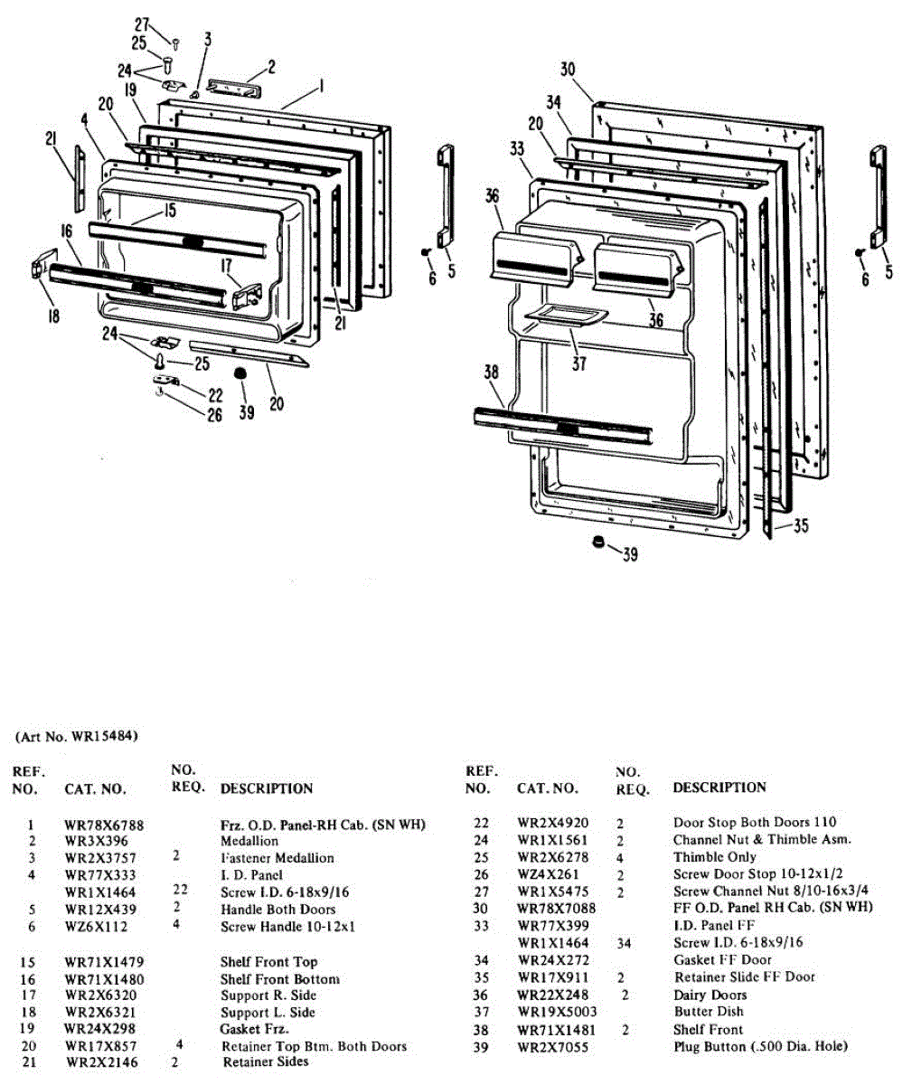 Hardware fasteners for securing refrigerator door panels and components. Includes screws, nuts, and washers for assembly. Replace missing or stripped pieces.