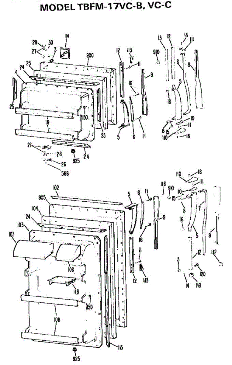 Parts for Ge TBFM17VCC: Doors Parts