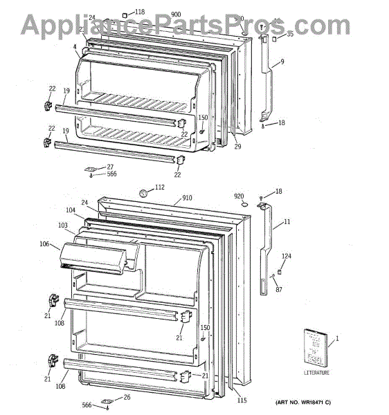 Parts for Ge TBH14SIBRLAA: 01 - Doors Parts