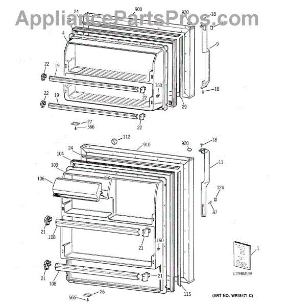 Parts for Ge TBH16SAADLAA: 01 - Doors Parts