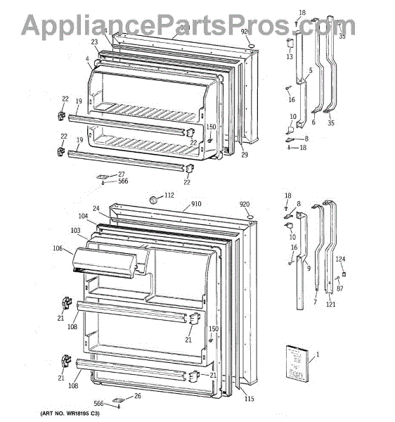 Parts for Ge TBX14SAZFLAD: 01 - Doors Parts