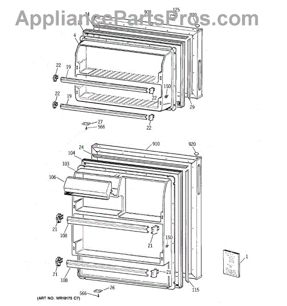 Parts for Ge TBX14SYZFRWH: 01 - Doors Parts