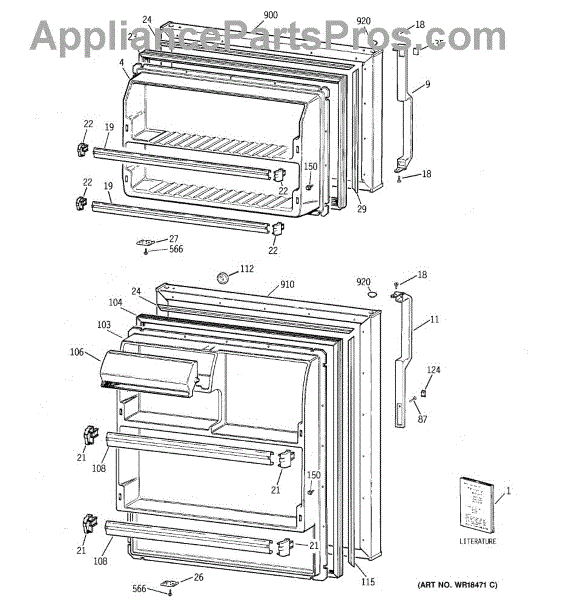 Parts for Ge TBX16SIBJRWW: 01 - Doors Parts