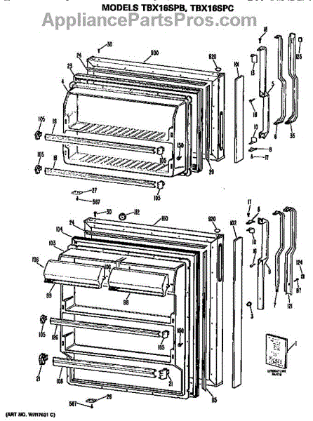 Parts for Ge TBX16SPCLAD: Doors Parts