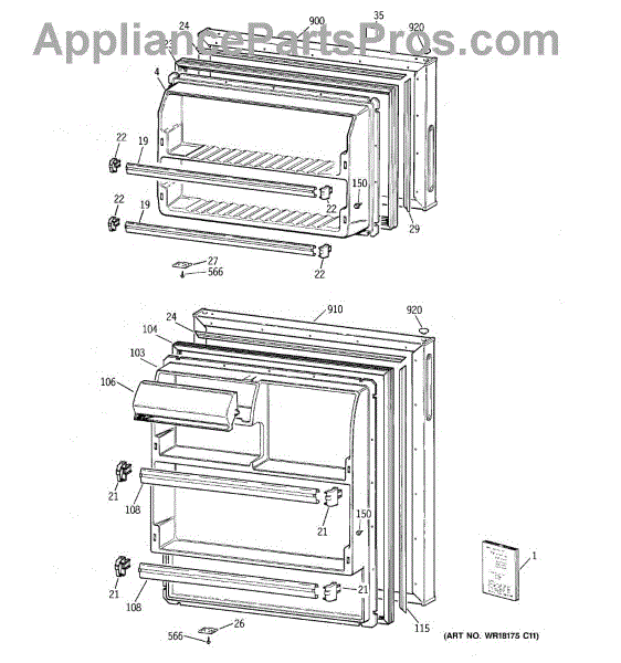 Parts for Ge TBX16SYBSLWW: 01 - Doors Parts