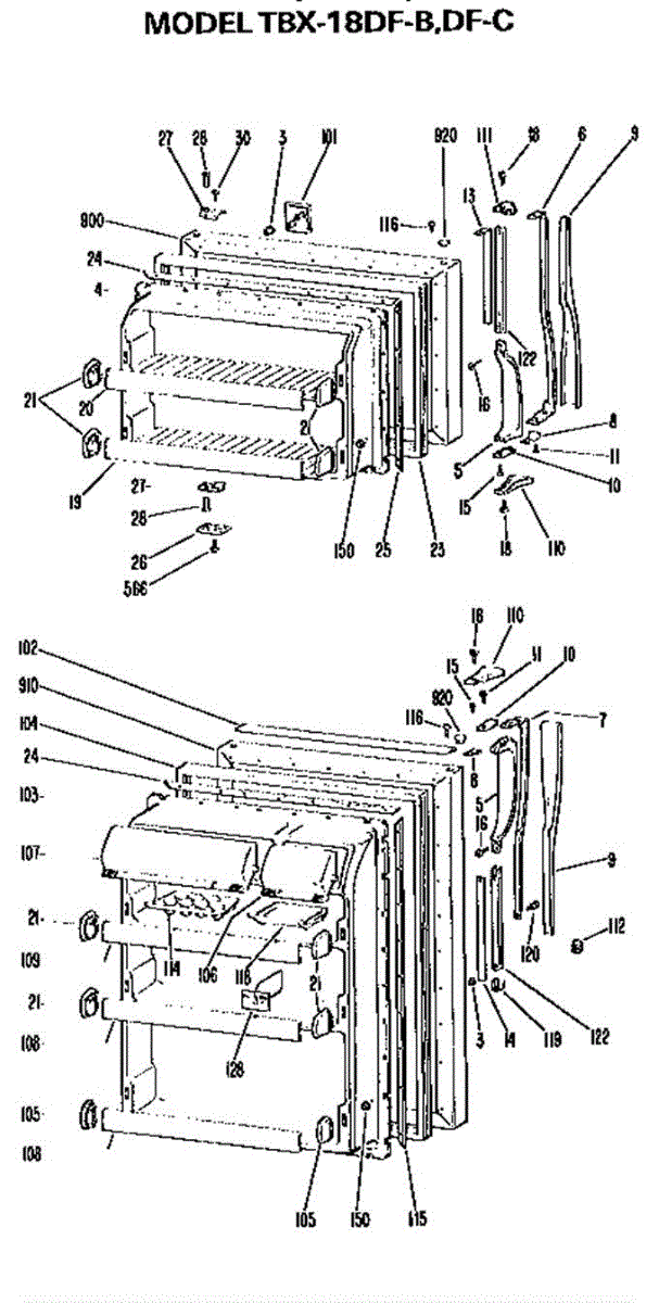 Parts for Ge TBX18DFB: Doors Parts
