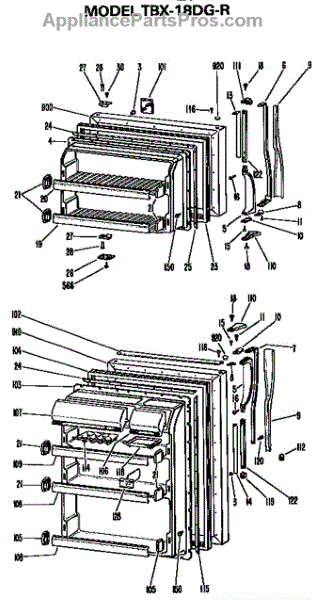 Parts for Ge TBX18DGR: Doors Parts