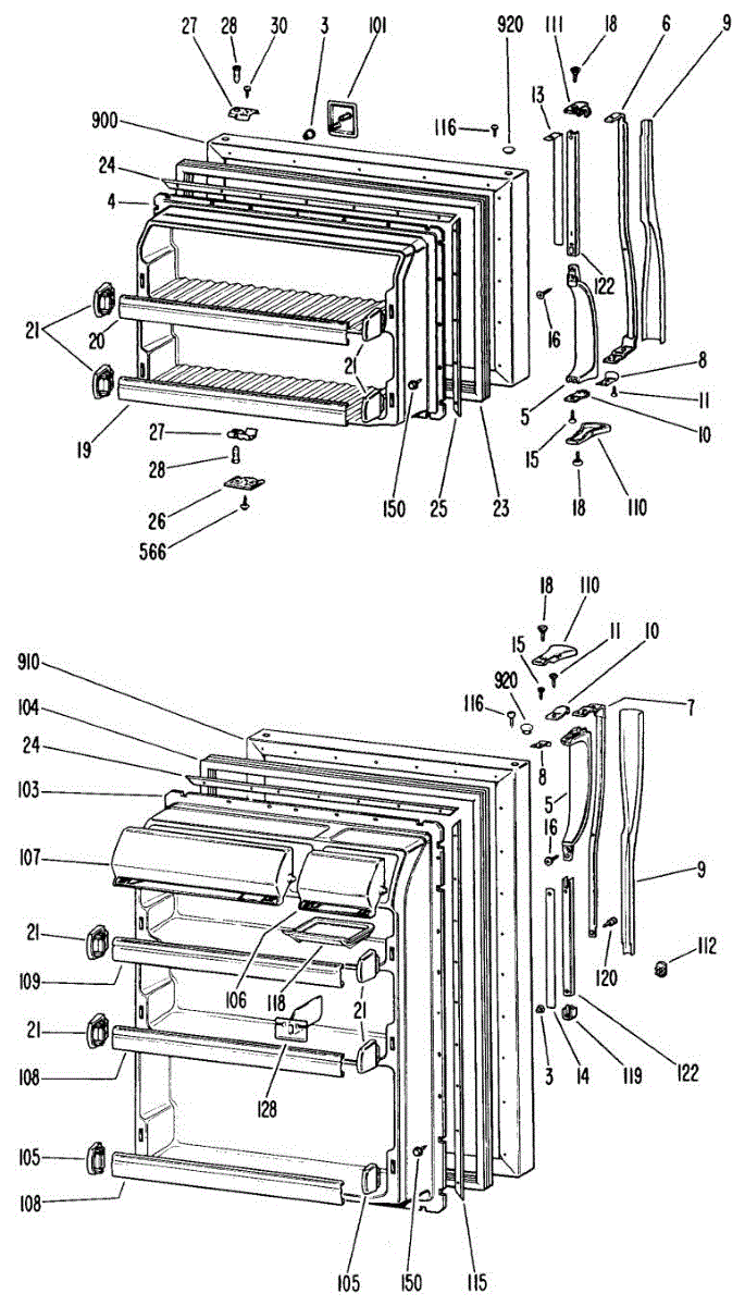 Hardware fasteners for securing refrigerator door panels and components. Includes screws, nuts, and washers for assembly. Replace missing or stripped pieces.