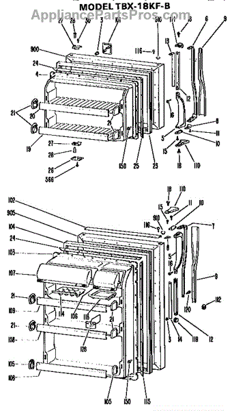 Parts for Ge TBX18KFB: Doors Parts