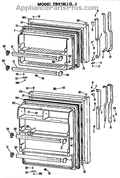 Parts for Ge TBX18LLGRAD: Doors Parts