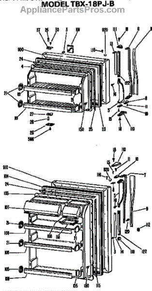 Parts for Ge TBX18PJB: Doors Parts