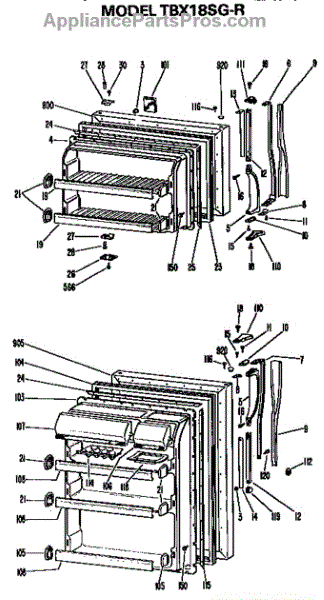 Parts for Ge TBX18SGR: Doors Parts