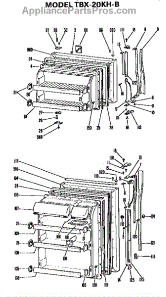 Parts for Ge TBX20KHB: Doors Parts