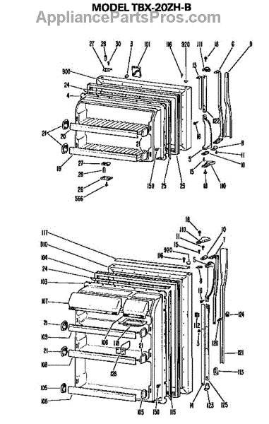 Parts for Ge TBX20ZHB: Doors Parts