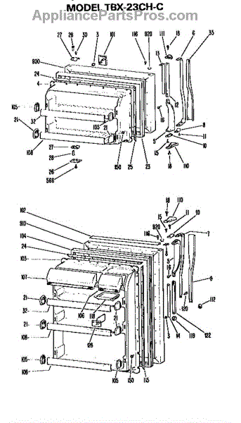 Parts for Ge TBX23CHC: Doors Parts