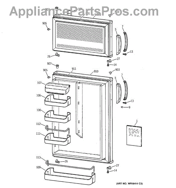 Parts for Ge TDX11SNYDRWH: 01 - Doors Parts