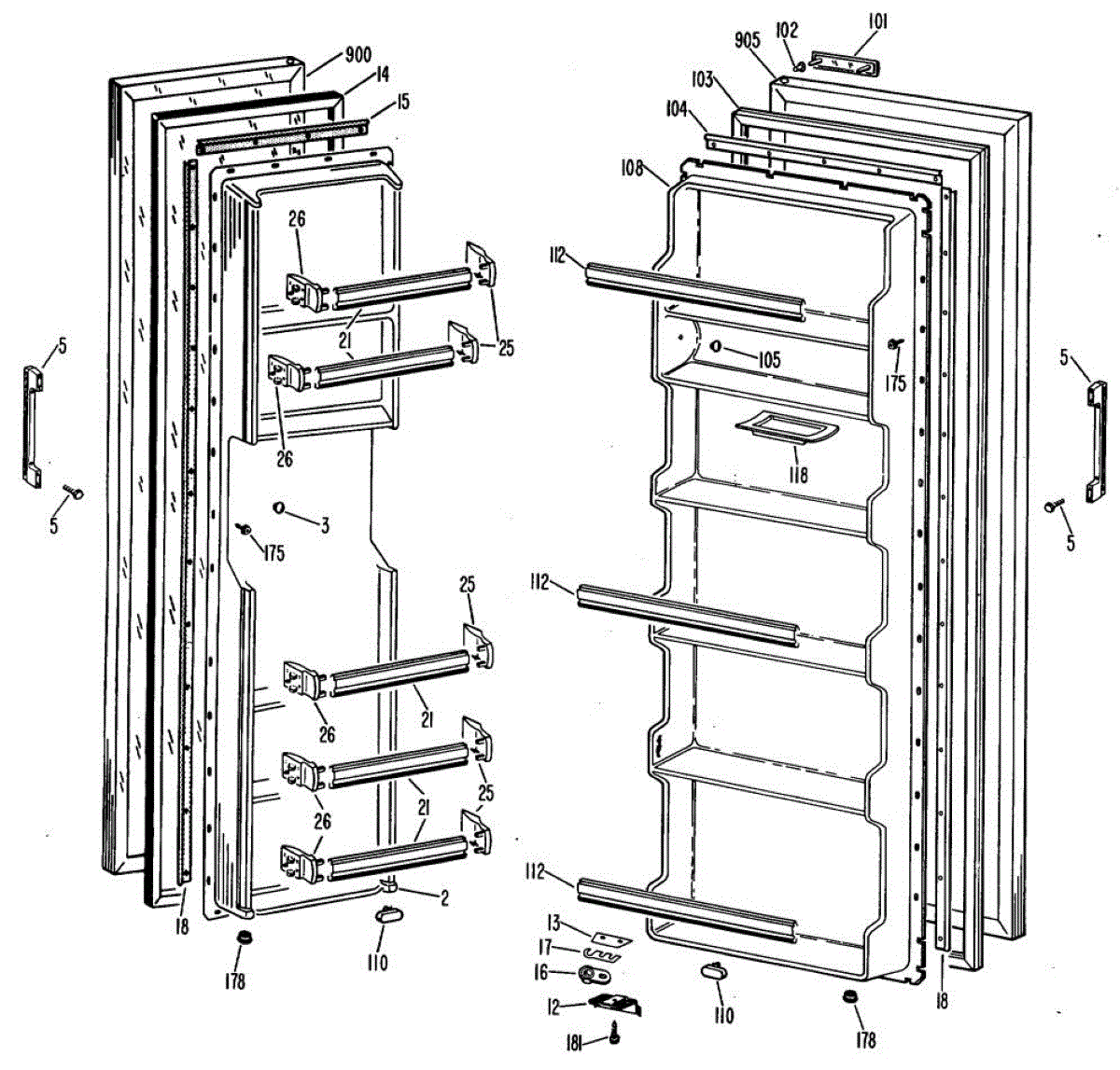 Hardware fasteners for securing refrigerator door panels and components. Includes screws, nuts, and washers for assembly. Replace missing or stripped pieces.