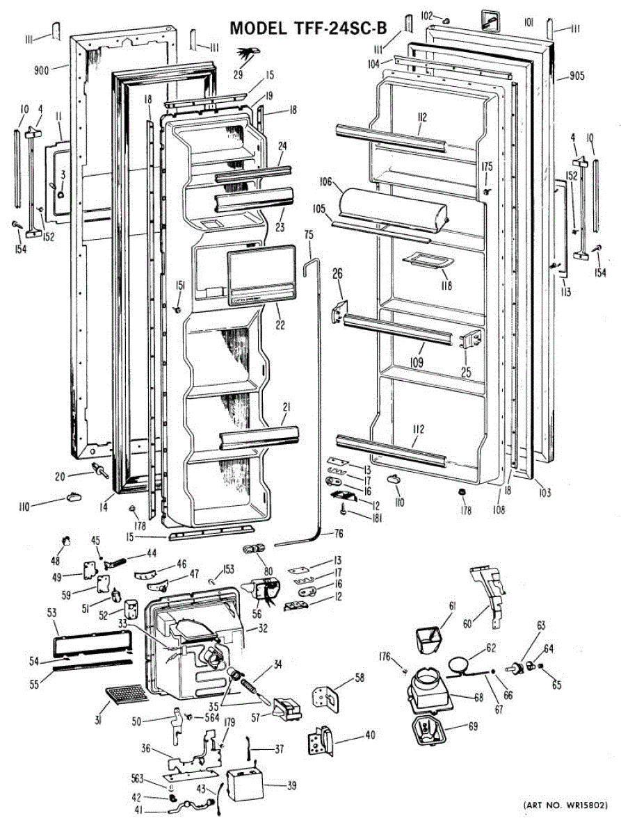 Hardware fasteners for securing refrigerator door panels and components. Includes screws, nuts, and washers for assembly. Replace missing or stripped pieces.