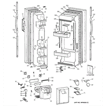 The Ice Door Assembly is an OEM part for GE refrigerators. It is integral to the ice dispenser system, controlling access to the ice chute. This component ensures the efficient delivery of ice cubes or crushed ice when activated and seals off the chute when not in use to maintain the freezer's temperature and prevent frost buildup.