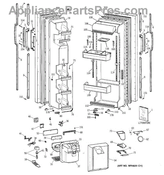 The Ice Door Assembly is an OEM part for GE refrigerators. It is integral to the ice dispenser system, controlling access to the ice chute. This component ensures the efficient delivery of ice cubes or crushed ice when activated and seals off the chute when not in use to maintain the freezer's temperature and prevent frost buildup.