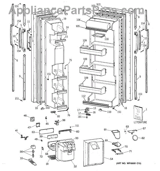 The Ice Door Assembly is an OEM part for GE refrigerators. It is integral to the ice dispenser system, controlling access to the ice chute. This component ensures the efficient delivery of ice cubes or crushed ice when activated and seals off the chute when not in use to maintain the freezer's temperature and prevent frost buildup.