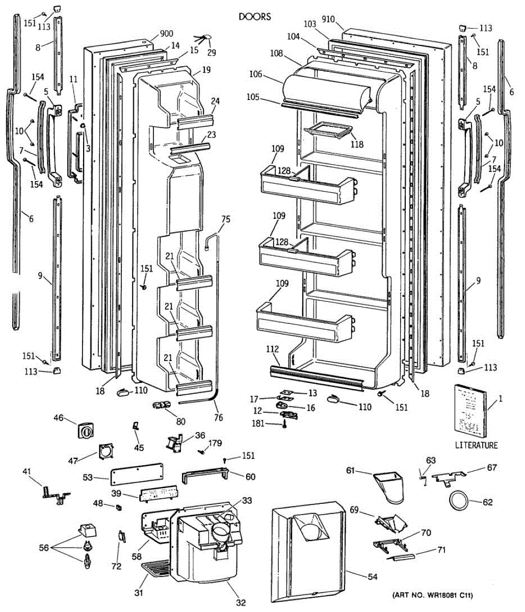 Ice dispenser door assembly seals the ice chute opening on your refrigerator. Replace if cracked, warped, or the rubber gasket is damaged and leaking air.