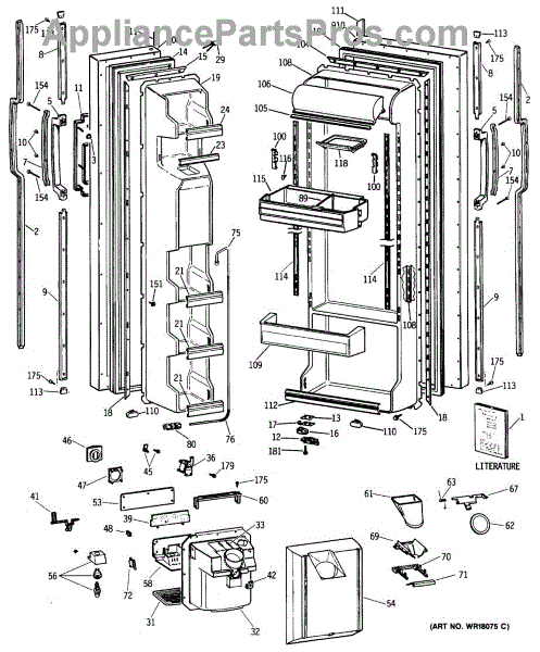 The Ice Door Assembly is an OEM part for GE refrigerators. It is integral to the ice dispenser system, controlling access to the ice chute. This component ensures the efficient delivery of ice cubes or crushed ice when activated and seals off the chute when not in use to maintain the freezer's temperature and prevent frost buildup.