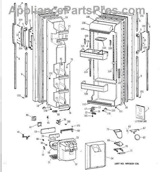 The Ice Door Assembly is an OEM part for GE refrigerators. It is integral to the ice dispenser system, controlling access to the ice chute. This component ensures the efficient delivery of ice cubes or crushed ice when activated and seals off the chute when not in use to maintain the freezer's temperature and prevent frost buildup.