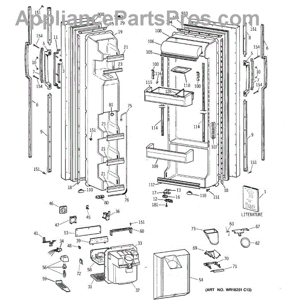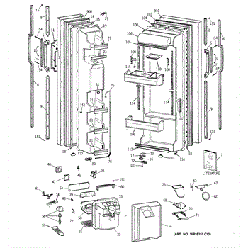 The Ice Door Assembly is an OEM part for GE refrigerators. It is integral to the ice dispenser system, controlling access to the ice chute. This component ensures the efficient delivery of ice cubes or crushed ice when activated and seals off the chute when not in use to maintain the freezer's temperature and prevent frost buildup.