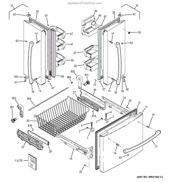 • Flips between doors to create the center mullion seal in the fresh food compartment