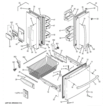 The Lower Freezer Basket is an OEM replacement part for GE refrigerators designed to fit in the lower section of the freezer, providing a convenient storage area for your frozen items.