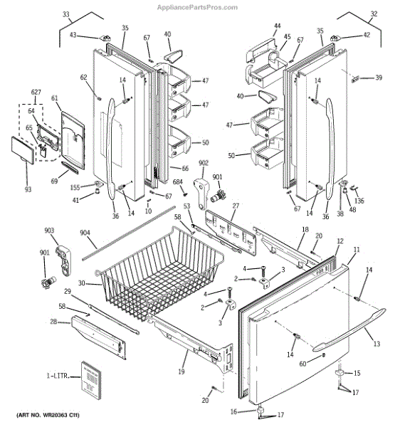 The Lower Freezer Basket is an OEM replacement part for GE refrigerators designed to fit in the lower section of the freezer, providing a convenient storage area for your frozen items.