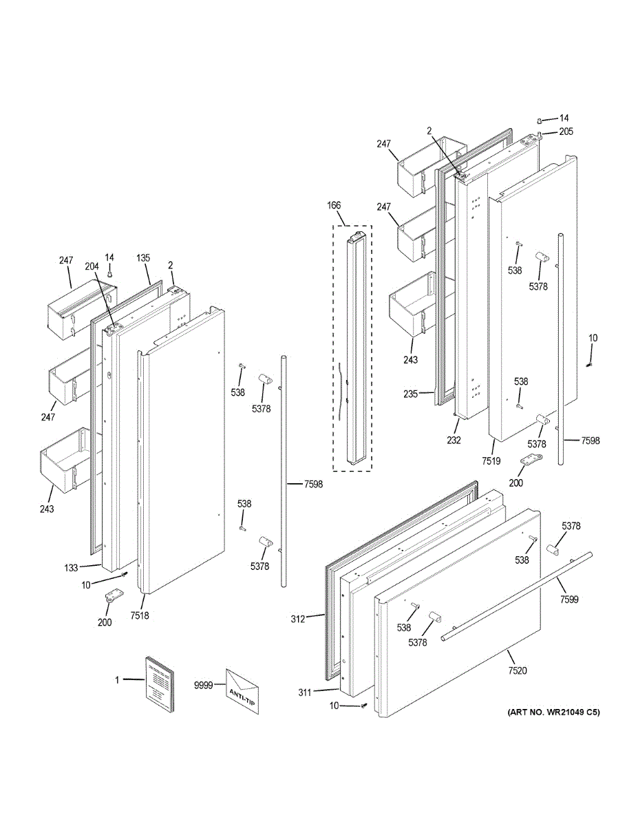 Anti-tip hardware assembly secures your refrigerator to the floor or wall. Replacement needed if brackets are broken, missing, or worn from installation.