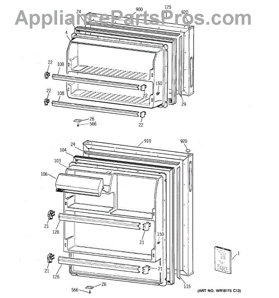 Parts for Hot Point HTR17BBRFRWW: 01 - Doors Parts