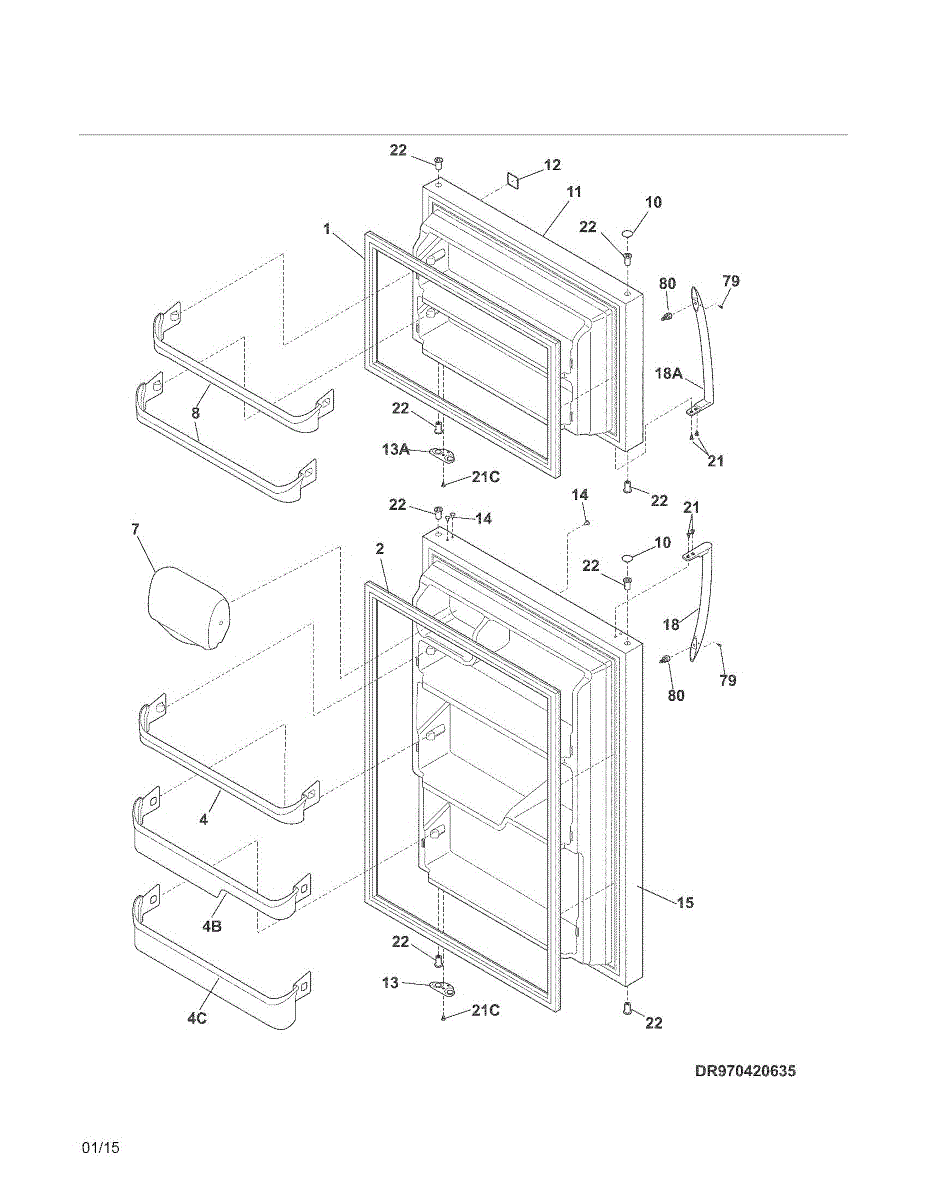A replacement outer freezer door that restores the unit's sealed storage area and exterior appearance. Replaces a damaged, dented, or warped freezer door to help maintain proper cold retention and a finished look. What it does: