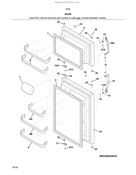 Parts for Kenmore 253.60302612 (25360302612, 253 60302612): Doors Parts