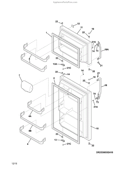 Parts for Kenmore 253.60309414 (25360309414, 253 60309414): Doors Parts