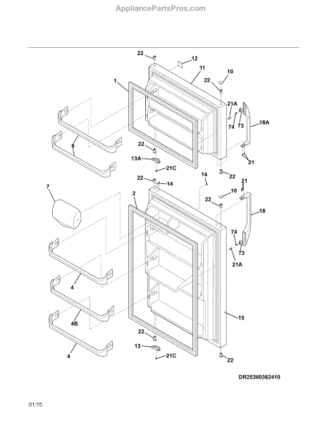 Parts for Kenmore 253.60402411 (25360402411, 253 60402411): Doors Parts