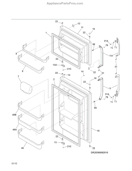 Parts for Kenmore 253.70602411 (25370602411, 253 70602411): Doors Parts
