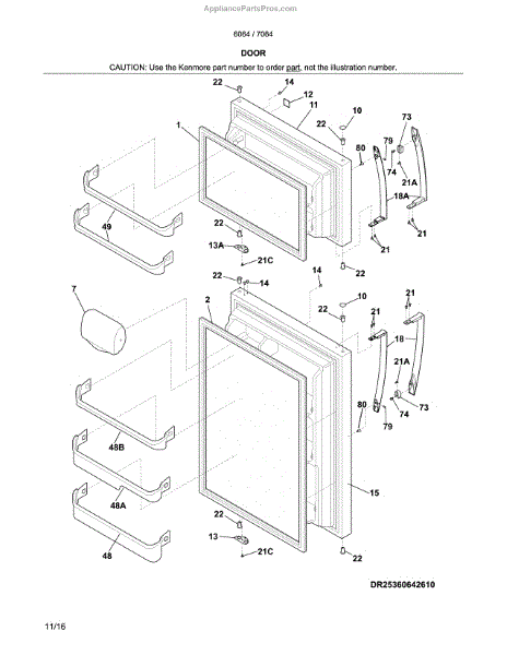 The Refrigerator Door Gasket is an OEM replacement part for Frigidaire refrigerators. As a sealing component, it surrounds the door frame to keep cold air circulating optimally. Proper installation and fit maintains energy efficiency. Causes of failure involve cracks arising over constant compression and expansion during repeated openings. Mineral buildup may also compromise the seal over time. Symptoms of a defective gasket include: