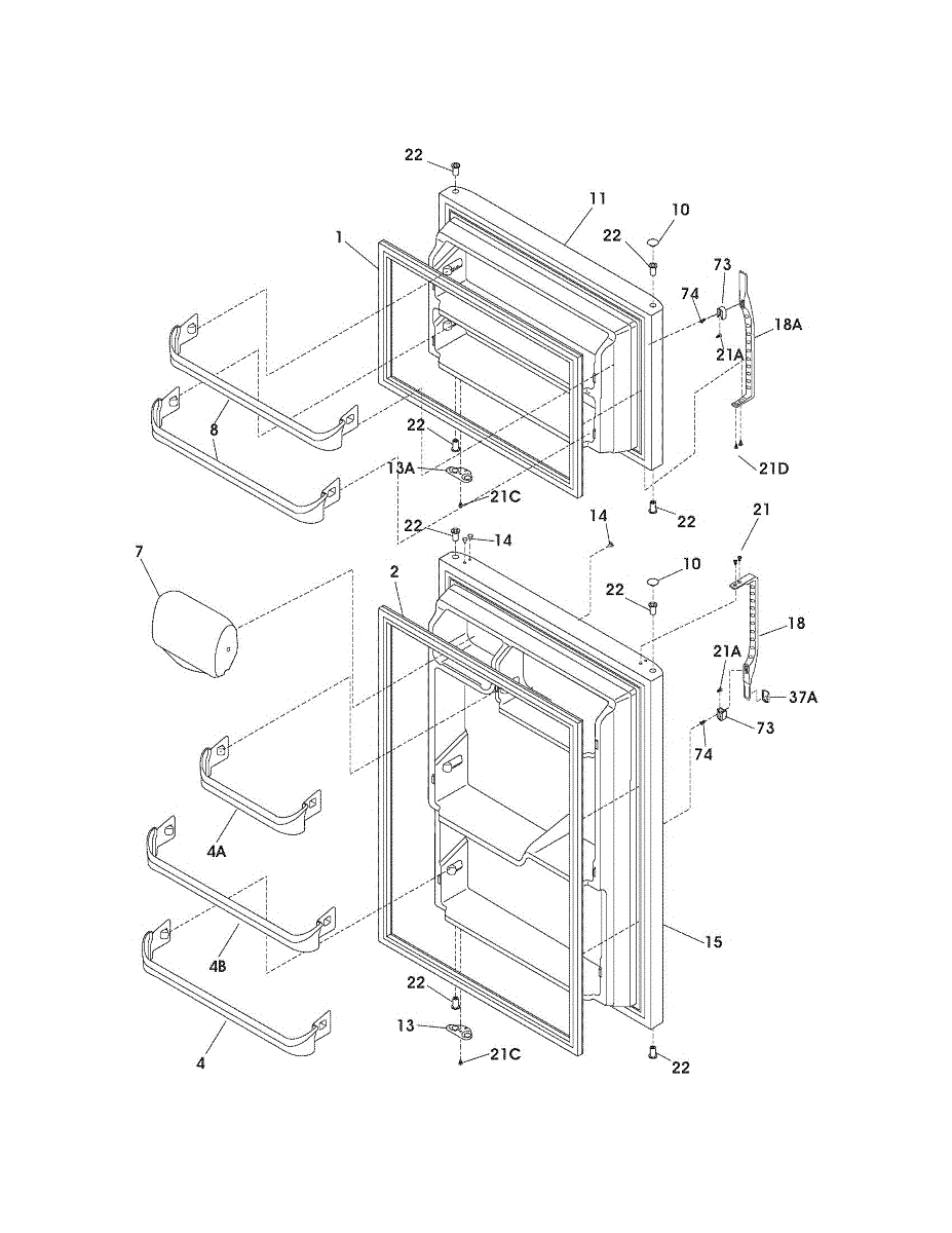 Parts for Kenmore 253.74522403 (25374522403, 253 74522403): Doors Parts