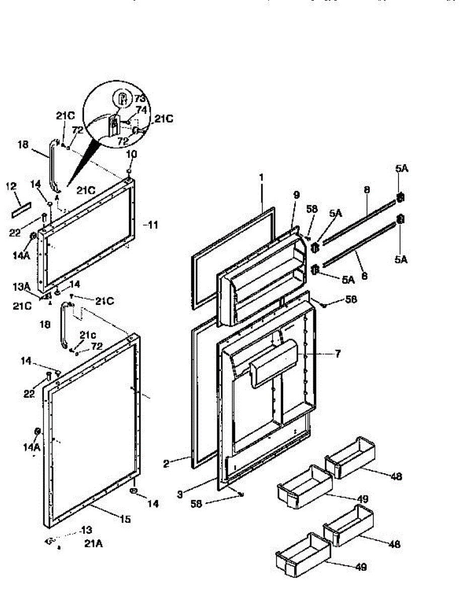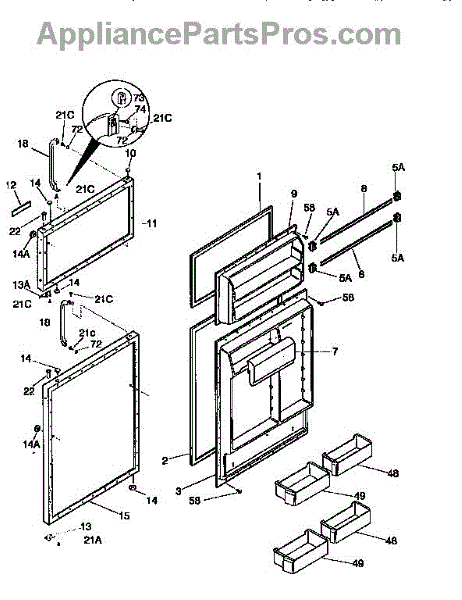 Seals refrigerator door to maintain cool air and prevent warm air leaks. Replace if torn, deformed, or causing temperature issues. Verify fit by model.